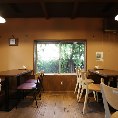 白を基調とした壁と木目の温かさが調和する、居心地の良い当店。大きな窓から柔らかな光が差し込み、店内を明るく照らします♪パッチワーク柄のおしゃれな椅子が空間に彩りを添え、窓の外の緑も心地よいアクセントに。一人でも、誰かと一緒でも、ゆったりとくつろげるプライベートな空間です♪