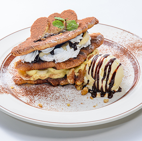 プレスクロワッサンを贅沢に3枚使用!カスタード、生クリームをサンドしたボリュームたっぷりの映えスイーツ