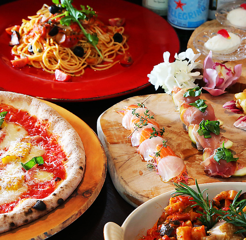 旬の食材を使ったパスタや自家製モッツアレラチーズの窯焼きピッツァが自慢のお店です。お酒との相性抜群なアラカルトメニューを一皿からご注文承ります。ピッツァはテイクアウト可能◎当店自慢のイタリアンをフルコースでお届けする豪華なコースもご用意しておりますので、ぜひご利用ください!