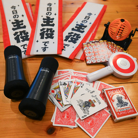 なんと貸し切りや大人数でご利用をご希望いただきましたらマイクや盛り上がるパーティーグッズもご用意しております!今宵はぜひ当店にて楽しいひとときをお過ごしくださいませ♪貸切利用も大歓迎です!まずはお気軽にお問い合わせくださいませ!