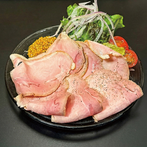 じっくりと時間をかけて焼き上げた自家製ローストポーク。中は驚くほど柔らかく、肉の旨みがギュッと詰まっています。