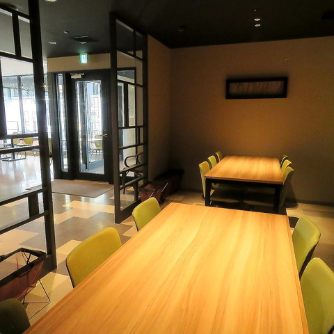 グループや団体様でも利用可能な半個室を備えております。周囲を気にせずお客様だけのひと時をお過ごしください。インテリアや照明での演出にもこだわった店内は、柔らかい間接照明の光に照らされたリラックス空間となっております。シーンに合ったぴったりのお料理と空間をご提供いたします。