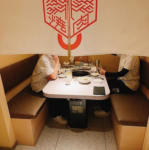 個室風のテーブル席を完備☆人目を気にせず、記念日や誕生日・還暦祝いなどのシーンにオススメです。ジューシーなお肉とともに楽しいお時間をお過ごしいただけます♪ワインや日本酒も豊富ですので、お好みと一杯と共にご賞味ください。
