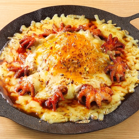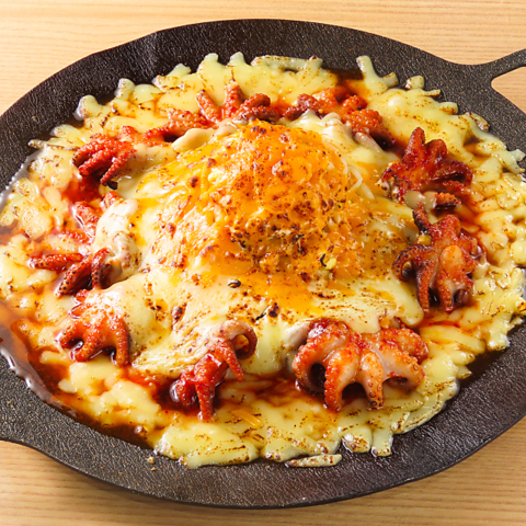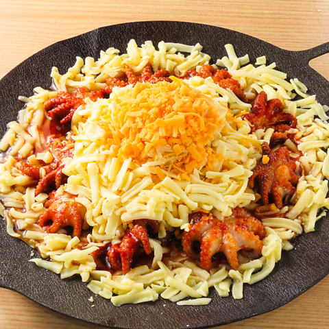 チーズチュクミドサ」は、韓国で人気のイイダコを、甘辛い特製ヤンニョムダレで炒め、とろ~りチーズにたっぷり絡めて食べるスタミナ満点の一皿!ぜひCOCOYAに来たら韓国式鉄板グルメのチュクミドサを!