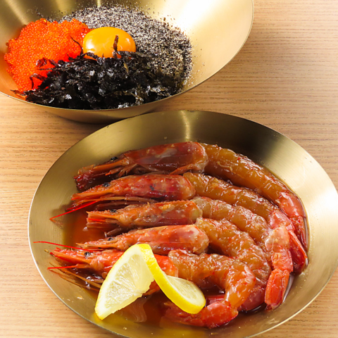 現地の屋台でも大人気のイイダコ炒めや醤油エビなどが韓国屋台風の店内で