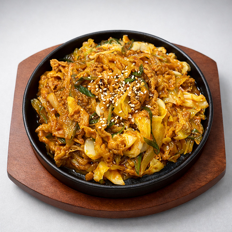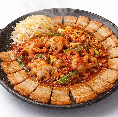 チーズチュクミドサ」は、韓国で人気のイイダコを、甘辛い特製ヤンニョムダレで炒め、とろ~りチーズにたっぷり絡めて食べるスタミナ満点の一皿!ぜひCOCOYAに来たら韓国式鉄板グルメのチュクミドサを!