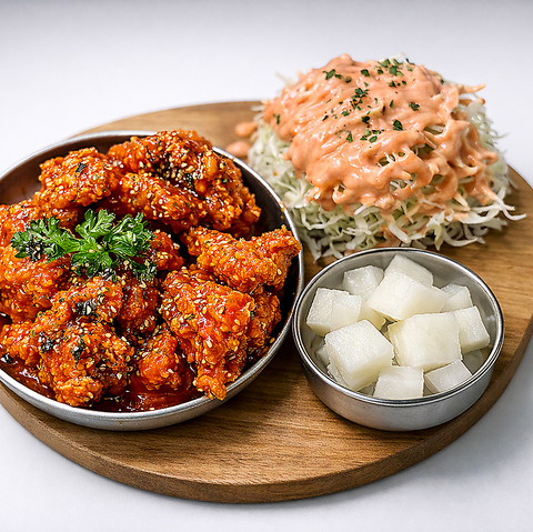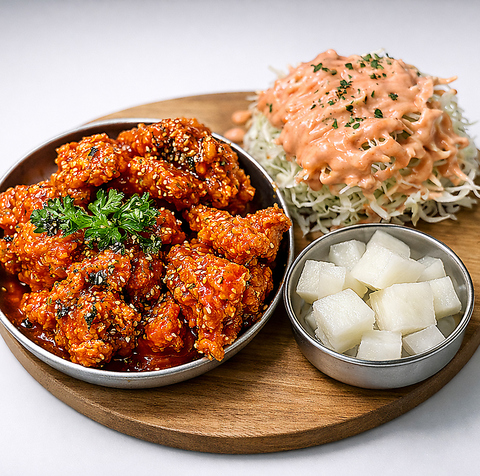 生ビールはもちろん、韓国焼酎チャミスルや定番のマッコリも飲み放題でこの価格!お得に飲み放題を楽しみつつ、チキンやトッポギなど大人気の韓国料理メニューで!