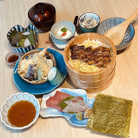 極上鰻と錦糸卵が食欲をそそるせいろ御膳やひと味もふた味も楽しめるおひつ御膳、丁寧に焼きあげた鰻に秘伝のタレをつけた極上鰻丼を含む御膳など多数取り揃えております。小食な方は半尾や沢山召し上がりたい方は1尾半など量が異なるので、ご自身に合った御膳をご注文ください。おひつ御膳は4通りの食べ方をご提案します。