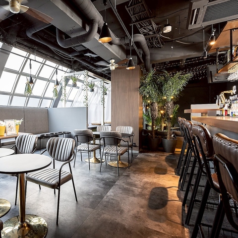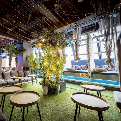 カウンター、テーブル、リクライニングソファ席、テラス席とお好みのお席でお楽しみ頂けます!オシャレなリゾートカフェ&バーで非日常空間をご満足いただけること間違いなし!《 貸切 個室 飲み放題 梅田 お初天神 女子会》