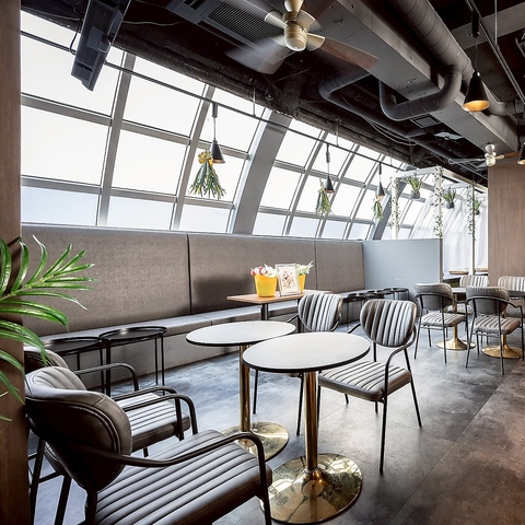 【テーブル・リクライニングソファ席など全124席!】光がたっぷり入る造りになっているので、カフェタイムとバータイムで2つの雰囲気を楽しめます♪《送別会 歓迎会 カフェ 貸切 個室 飲み放題 梅田 お初天神 女子会 デート 合コン 二次会 忘年会》