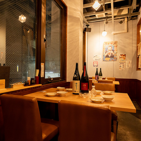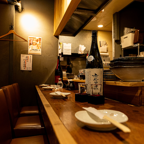 お一人飲みはカウンター席で。日本酒をはじめ、こだわりのお酒を取り揃えています。仕事終わりのサク飲み利用はもちろん、日本酒と鮮魚のペアリングをゆたったりと楽しめます。