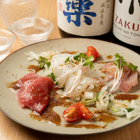 人気の鮮魚を使ったカルパッチョ。あっさり食べられて最初のオーダーにもおすすめです♪