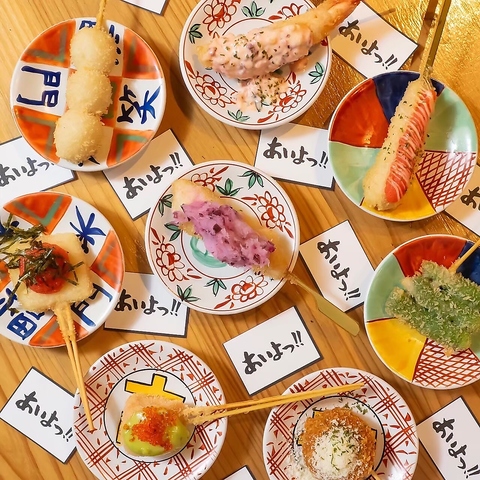 コスパ良し・雰囲気良し・料理良しの三拍子♪リーズナブルな価格でコースもお楽しみ頂けす。あいよっ!!ならではのこだわりです。お好きなものをお好きなだけご注文頂き本格創作串揚げをご堪能ください☆