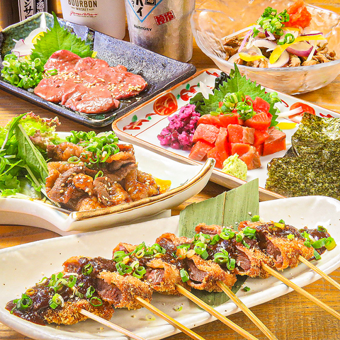 人気の串カツから厚切り牛タン炙りなど全8品120分飲み放題付コースが人気◎