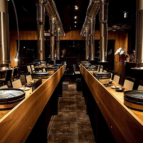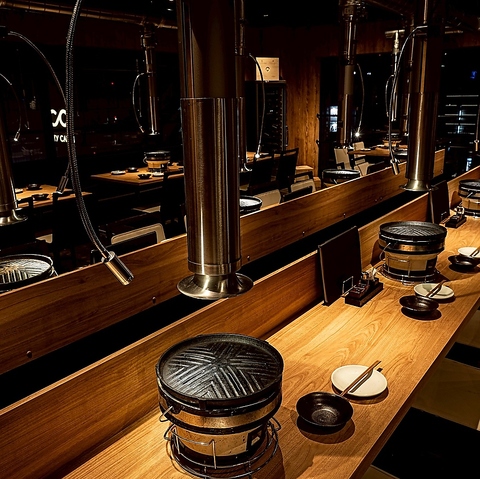 お一人様や少人数グループでのご利用に最適なカウンター席もございます。木目調のテーブルと暖かな照明で落ち着いた雰囲気を演出しております。じっくりとご自分のペースでお肉を焼き、贅沢なお食事のお時間をお過ごしくださいませ。皆様のご来店を心よりお待ちしております。