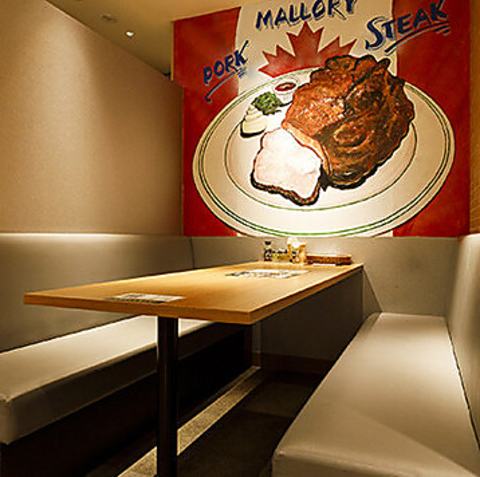 落ち着いた空間でくつろげるソファー席をご用意。デートや少人数でのんびり食事をしたい時にぴったりです。周囲を気にせず、上質なポークステーキを心ゆくまでご堪能ください。