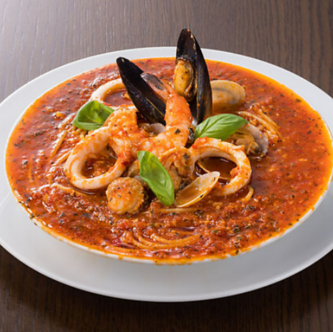 海の恵をふんだんに盛り込んだちょっと贅沢なトマトスープスパゲッティ
