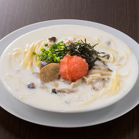 タラコとキノコと海苔で和風に仕上げたクリームスープスパゲッティ/辛味を使用していないのでお子様にもお勧め!