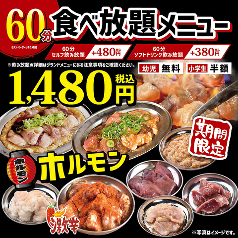 当店名物の驚愕価格!セルフ飲み放題480円!昼飲みのお客様も必見です!お酒と美味しいお肉を一緒にご賞味あれ!
