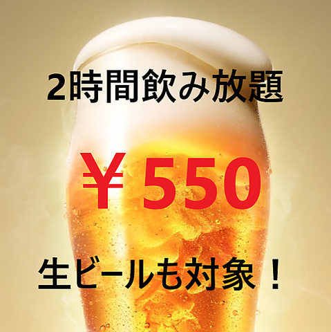 毎日早い時間はお得!生ビールも飲めて飲み放題が2時間500円!