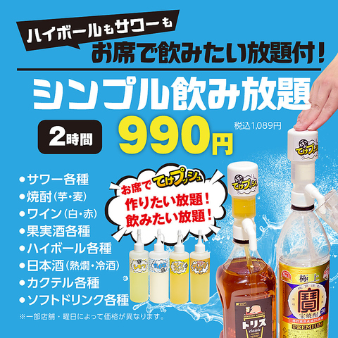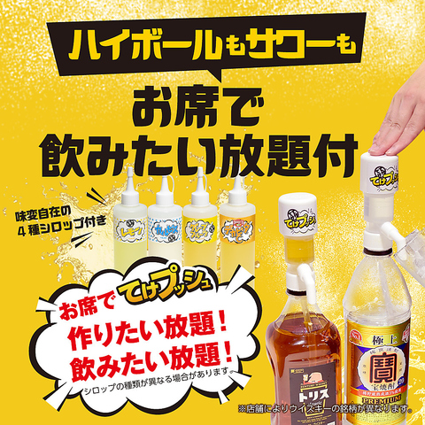 飲み放題・コースには「ハイボールもサワーもお席で飲みたい放題」付き。卓上で作れ、待たずに楽しめます。