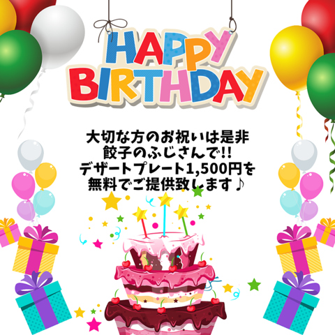 大切な方のお祝い事は是非《餃子のふじさん》で!メッセージ付きデザートプレート1,500円⇒0円《無料》でご提供致します!要予約となりますのでご予約の際にご注文お願い致します!