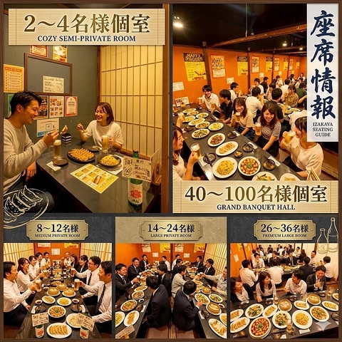 | 総席数 | 200席(2名様から最大200名様まで何名様でも完全個室で宴会OK!) |