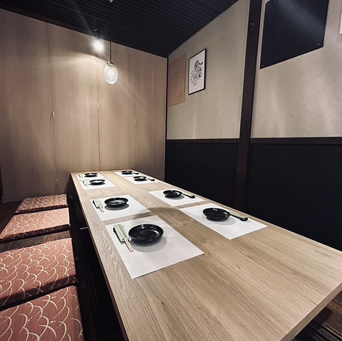 2名様からご利用頂ける個室テーブル席。同様のお部屋を複数ご用意しております。周りを気にせずにお過ごし頂けます。宴会・飲み会・女子会に◎皆さんだけで個室空間をお楽しみいただけます。美味しいご飯と、お酒で満足いくひと時をご提供させていただきます。