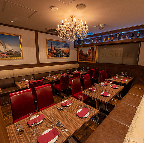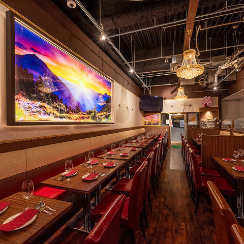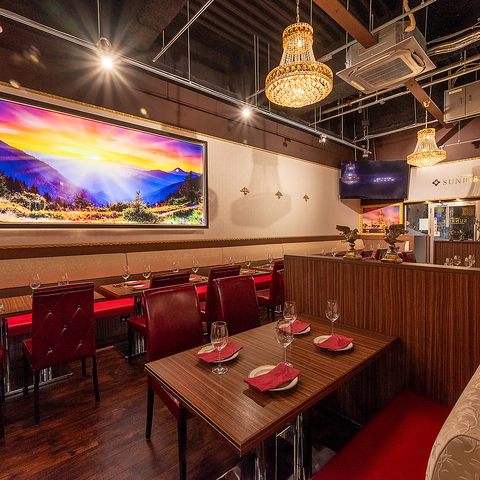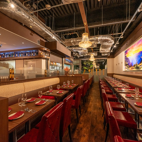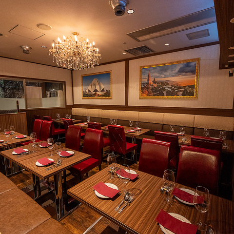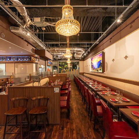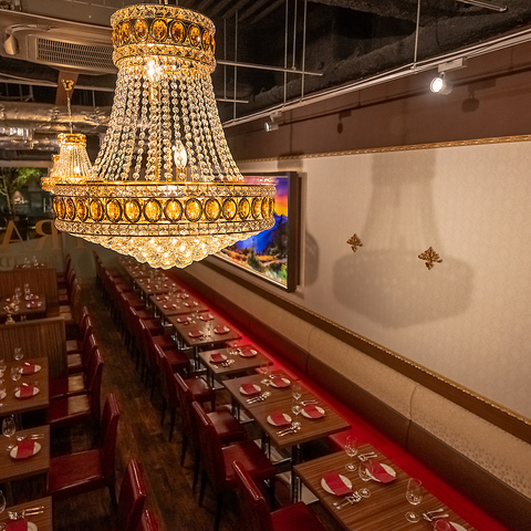 異国情緒あふれる店内にきらめくシャンデリアが、特別なひとときを演出。まるで旅行に訪れたかのような非日常空間で、贅沢な時間をお過ごしください。