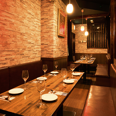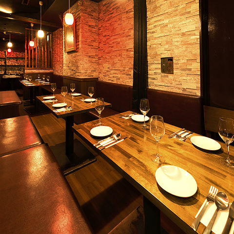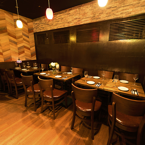 落ち着いた色調と柔らかい照明が印象的な店内には、2~4名向けのテーブル席や半個室ボックス席を多数ご用意。周囲を気にせずゆっくり会話が楽しめる空間は、デートや女子会、気の合う友人との食事にも最適です。おしゃれで居心地の良い雰囲気の中、塊肉やチーズ料理をゆっくり堪能できます。