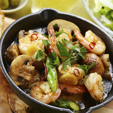 オリーブオイルとにんにくの香りが食欲をそそるアヒージョ。きのこの食感とベーコンの旨味が溶け出した熱々のオイルは、パンに絡めても絶品です。じんわり広がるガーリックの風味がクセになる味わいで、お酒との相性も抜群。テーブルに届いた瞬間に立ち上がる香りが、五感を刺激する人気のタパスメニューです。