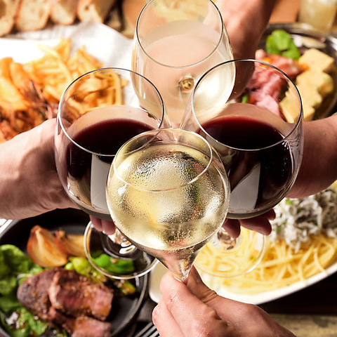 落ち着いた色調と洗練された照明が魅力の店内は、宴会にもぴったりの雰囲気。塊肉やピザを囲みながら、仲間と気兼ねなく語り合える空間です。テーブルレイアウトも柔軟に対応可能で、幹事様も安心。飲み放題付きのコースと合わせて、満足度の高い時間をお過ごしいただけます。