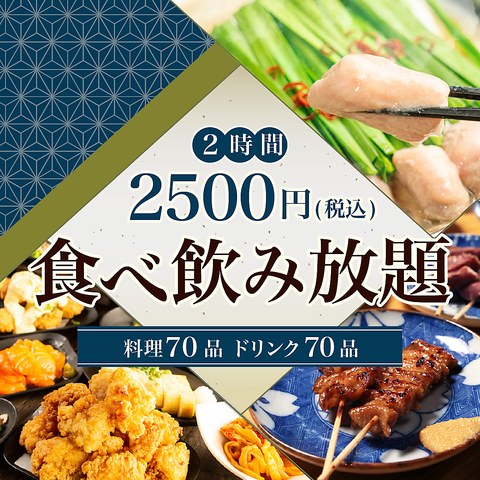 和食をはじめとしたお料理全品食べ&飲み放題が2500円(税込)!こだわり10種の炭火焼き鳥が食べ放題!