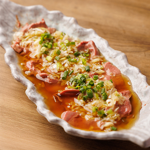 牛タンをジューシーに焼き上げ、自家製ネギ塩ダレをたっぷり!ネギの食感と塩ダレのコクが、牛タンの旨味をグッと引き立てます!レモンを絞ればさっぱり感もアップ!お酒が進む、当店自慢の逸品です!
