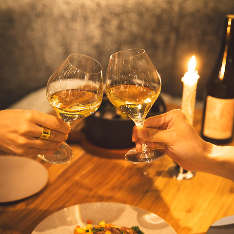 ドリンクは季節に合わせて葡萄本来の味わいを感じるナチュラルワインなどご用意♪