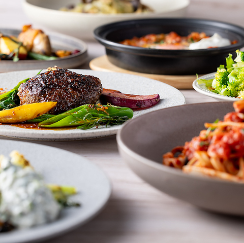 緑豊かな扇町公園の一角に佇む、ボタニカル”をコンセプトにしたファインダイニング。サラダビュッフェは野菜料理がずらりと8種類以上!味だけでなく見た目も華やかなサラダ♪サラダビュッフェをお楽しみいただけるコースも各種ご用意しております◎