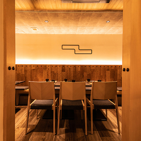 団体様でも快適に過ごせる個室席をご用意しております!プライベートからビジネスシーンまで幅広くご利用いただける和モダン空間!店舗貸切は最大100名様までご対応可能!ゆったりとお寛ぎいただける個室空間で、当店こだわりの創作和食・北海道産の厳選食材を旨い酒と共にどうぞ!