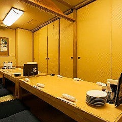 [シーンで選べる多彩な個室空間を完備]足を伸ばして、ゆったりとお愉しみいただける掘りごたつ個室を完備。隣接する部屋を繋げられますので最大16名様迄に対応可。どこか懐かしく落ち着く和風情溢れる空間で一体感のあるご宴会をお愉しみいただけます。取引先のご接待や家族の記念日の会食などに最適。