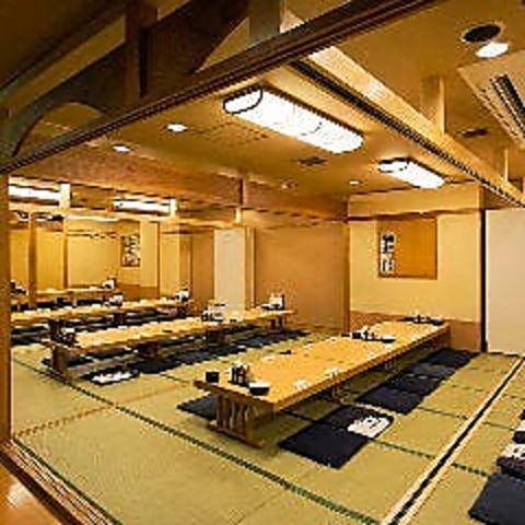 [最大110名様迄の座敷宴会OK]店奥の座敷で最大110名様迄の大宴会が可能!会社の歓送迎会や同窓会、慶事・法事利用と様々なシーンでご利用いただけます。和情緒溢れる癒し空間でごゆっくりお過ごしください。