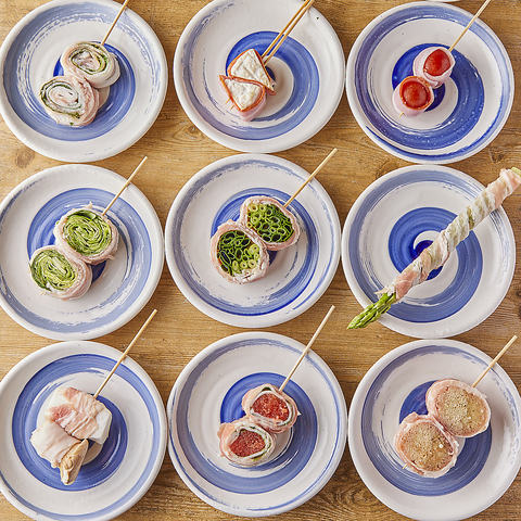 女性人気の火付け役《野菜巻き串》福岡博多の新名物としてメディアで話題沸騰!定番野菜の巻き串から変わり種の季節食材の巻き串と、うずまきでしか味わえない本格的な野菜巻き串をご賞味あれ♪