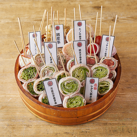 うずまきでしか食べられない!?食材達の一期一会を料理で表現♪料理長の遊び心が詰まった名物料理をご堪能してください!季節限定串・プチトマト巻・レタス巻・しそ巻・万ネギ巻・豚バラ串・鶏皮串etc...コスパ良し!ビールにもハイボールにも焼酎にも合う逸品です♪