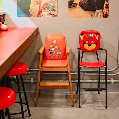 当店では、お子様用のお席もご用意しております。カラフルで可愛いデザインの椅子は、お子様が楽しみながら食事できるよう配慮されています。また、安全性にも配慮して、快適にお食事を楽しめる環境を整えております。家族で一緒に美味しいラーメンを囲んで、楽しい時間をお過ごしください。ぜひお気軽にご利用くださいね!