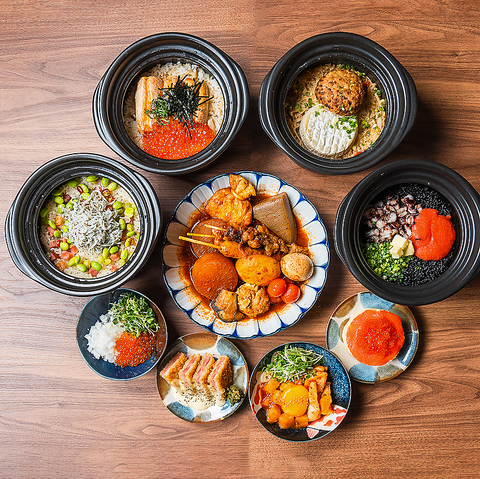 当店名物ネオ和食「デミ出汁おでん」「土鍋ごはん」「肉まぶし」「角煮丼」は是非食べて頂きたい逸品です。