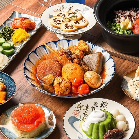 コースは2時間飲み放題付き3980円~♪新鮮な旬の食材を使用し、色とりどりの素材を組み合わせることで、視覚的な楽しさを演出。季節感を感じることができる美しい一皿を提供します。料理に合わせた器の選定にもこだわり。和のテイストを活かしつつ、モダンなデザインの器を使用することで、料理の美しさを引き立てます。