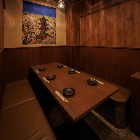 多数の個室をご用意する当店。接待や会食、記念日のお食事など少人数利用に最適な4名様個室。ご友人とのお食事や女子会に最適な5名様、6名様個室。店内の内装は和の空間を肌で感じることができる情緒溢れる空間です。仲間内の飲み会やお仕事の打ち上げなどにご利用いただける15名様個室もございます♪