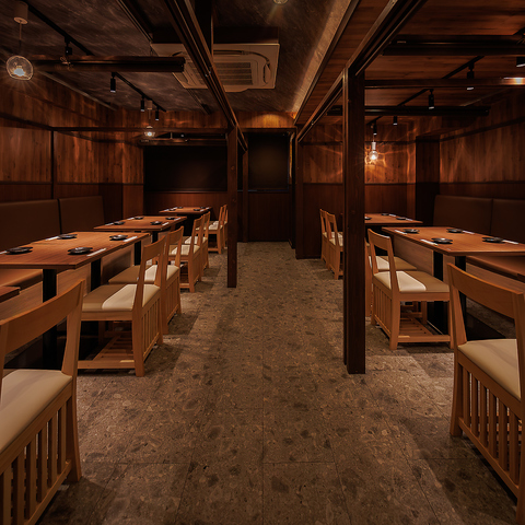 2名様から30名様までご利用いただける、オープンテーブル席もご用意♪暖かみのある照明が語らいと特別な空間を演出致します。プライベートな空間でご宴会をするよりも、にぎやかな空間でのご宴会を希望の方におススメのお席となっております♪少人数宴会にはおススメのお席となっておりますので是非ご利用くださいませ♪