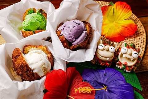 サーターアンダギーとアイスが融合したデザートは当店人気のメニュー!是非ご注文ください!