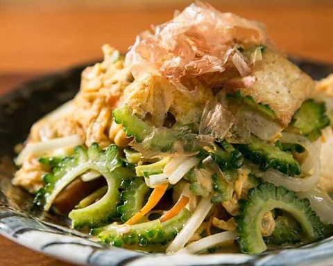 沖縄料理の定番「ゴーヤーチャンプルー」は当店の自慢の一品!ゴーヤーの心地よい苦味と、ふんわりとした卵、島豆腐、そしてポークの旨みが絶妙に絡み合います。鰹節の風味も食欲をそそります◎定番だからこそ、素材の新鮮さと味付けにこだわって仕上げています。お酒のおつまみにも、ご飯のおかずにもぴったりです☆