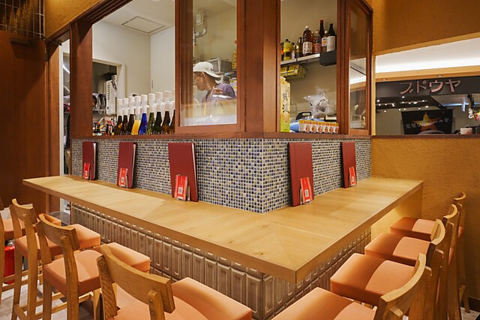 ご家族や友人との食事にぴったりのテーブル席をご用意。イノゲート大阪4Fに当店はございます!