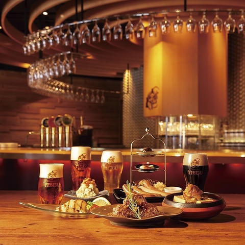 ヱビスバーのプロたちが徹底した品質管理と温度管理により常に最高のヱビスビールをご用意しております。単体ヱビスビールを楽しむも良し!ヱビスとヱビスを合わせたハーフ&ハーフで新しいヱビスの美味しさを味わうも良し!女性や若い方に大人気ビヤカクテルで全く違うヱビスの美味しさを知るも良し!各種に合わせたマリアージュ料理もご提案!